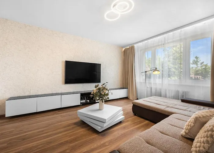 Apartment 10 Minutes From City Centre With Garden 布拉迪斯拉发距离圣马丁主教座堂仅4.5千米. 为方便客人,这间公寓设有露台,1间卧室和1间浴室.